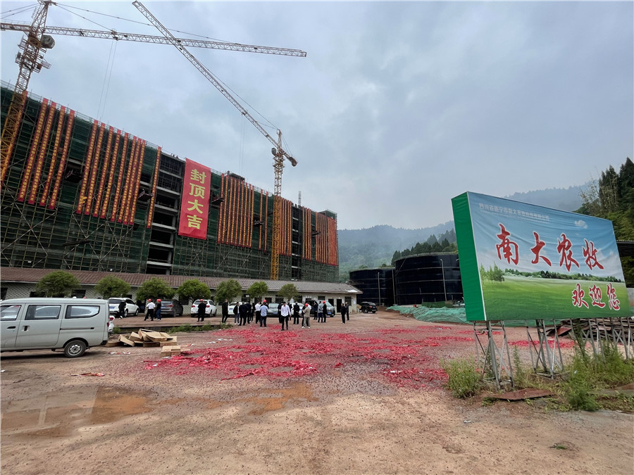 新建封頂?shù)哪洗筠r(nóng)牧公司是四川省遂寧市南大食品有限公司全額出資的子公司。投資1.5億元,種豬場采用立體養(yǎng)殖樓房設(shè)計,層高5米,主樓8層樓高,建筑面積40000余平米。項目占地80畝,流轉(zhuǎn)土地2000畝。建成后年出欄生豬達12萬頭。